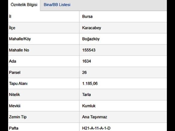 - Arazi Alanı 1185