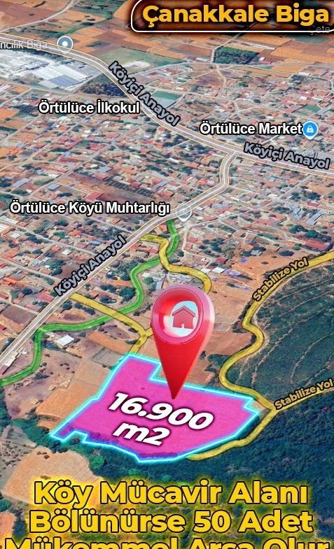 🏡 Biga Örtülce’de 17 Dönüm Müstakil Tek Tapu Arsa – Yatırım ve Gelecek Garantili