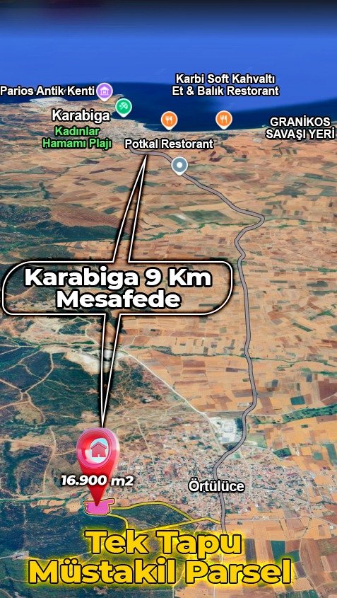 ✅ Karabiga’ya 9 km, sahile 5 km → turizm ve yaşam potansiyeli