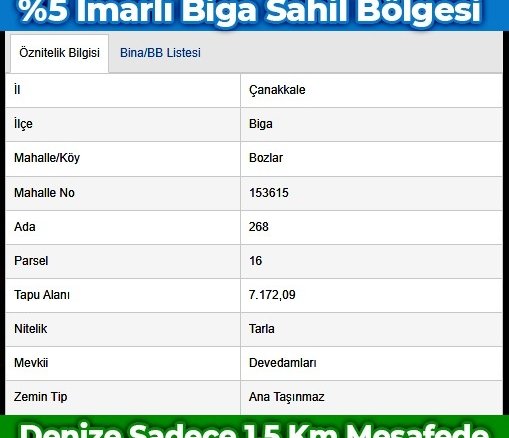 🏡 Çanakkale Biga’da FULL Deniz Manzaralı, %5 İmarlı, Yatırımlık Arsa Fırsatı