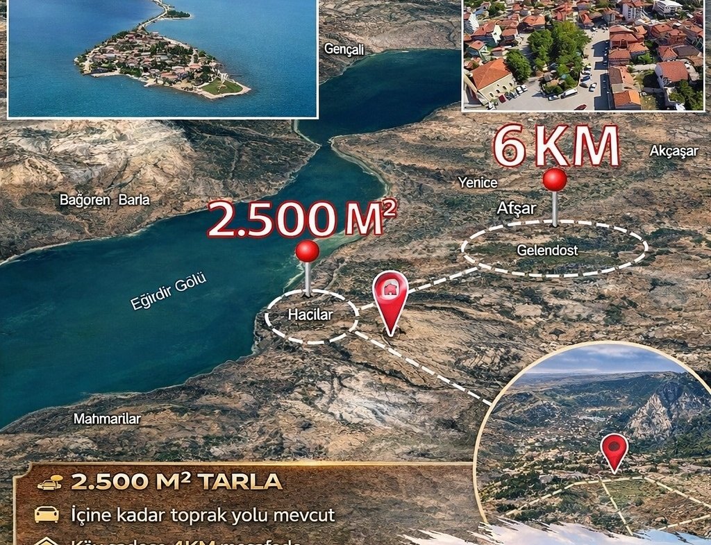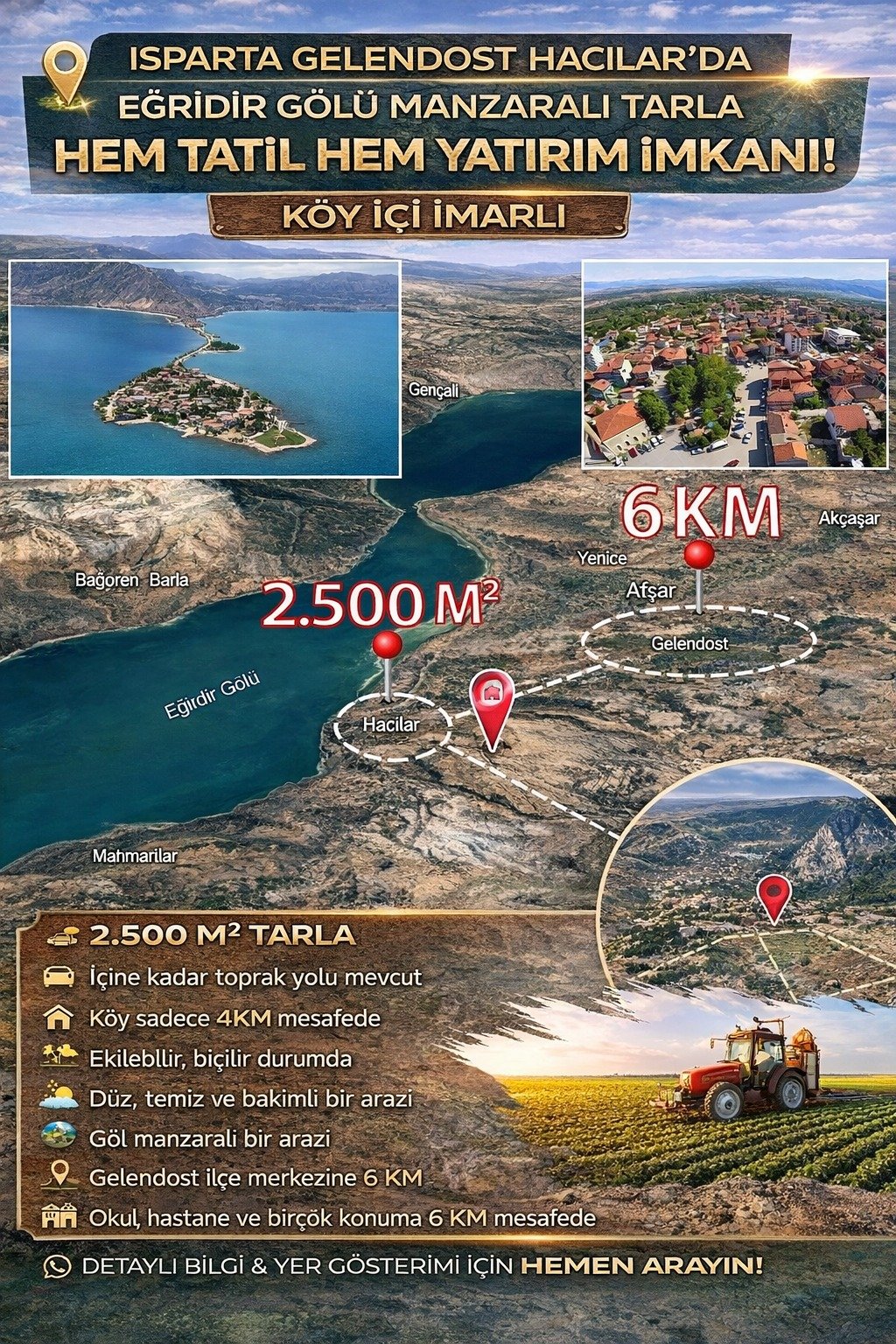 🌊 Isparta Gelendost Hacılar’da 2.500 m² Eğirdir Gölü Manzaralı Tarla | Yola Cepheli | Yatırımlık Fırsat