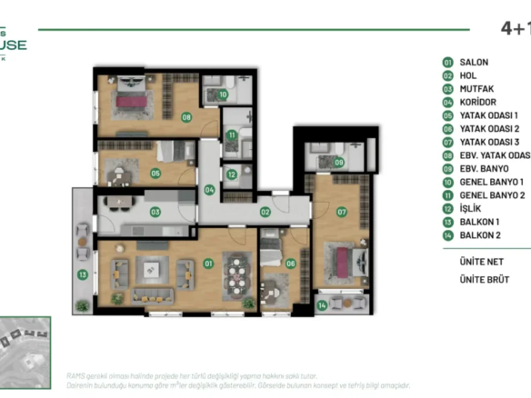 - Yatak Odası 1+1’den 4+1’e