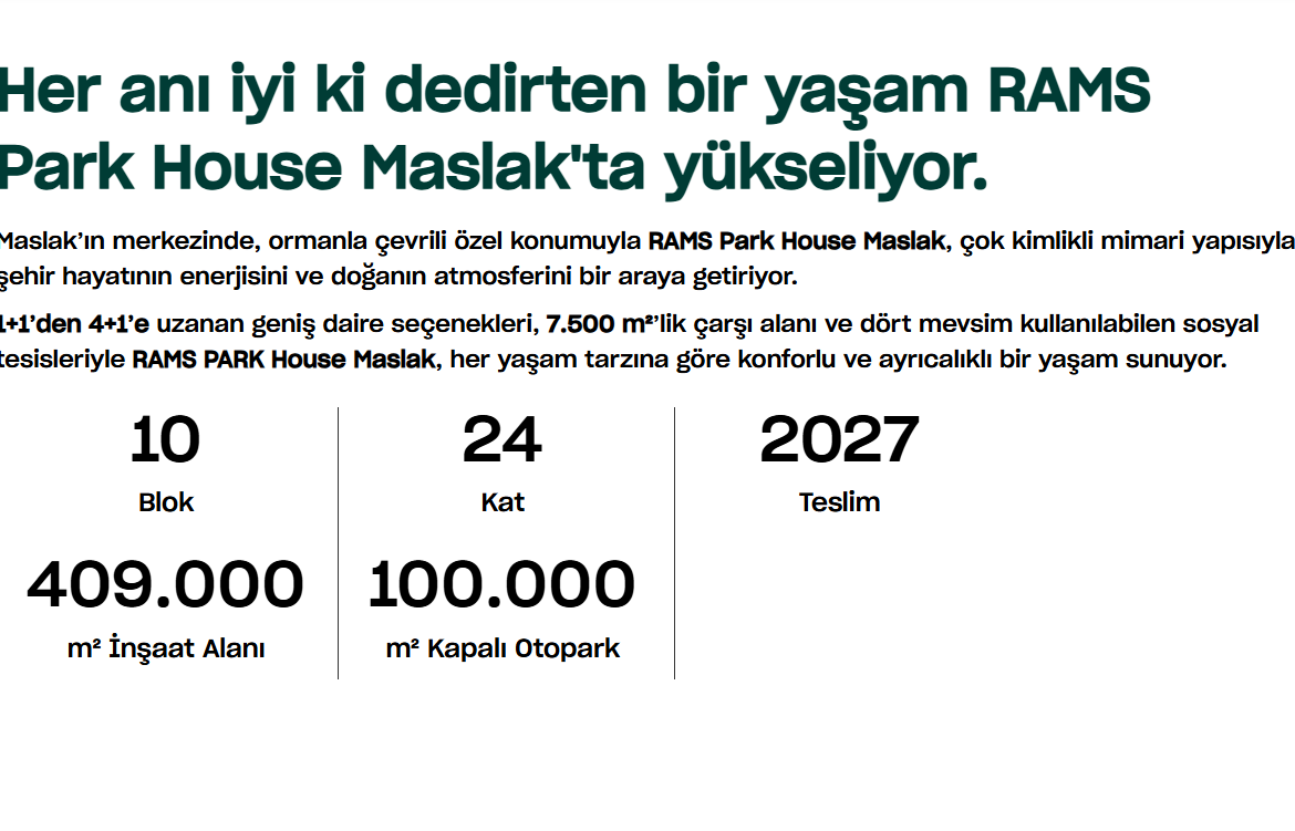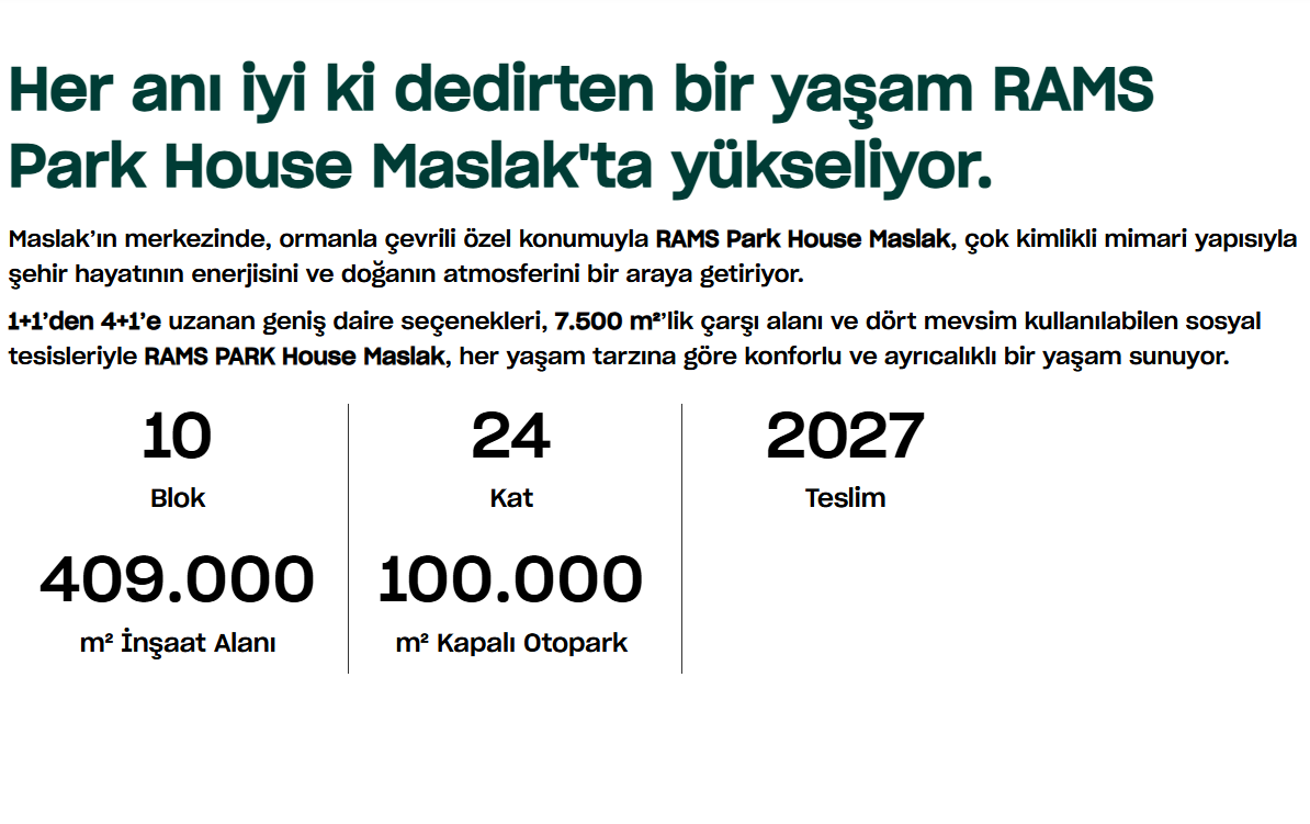 🏙️ RAMS Park House Maslak | MenkulEX Güvencesiyle