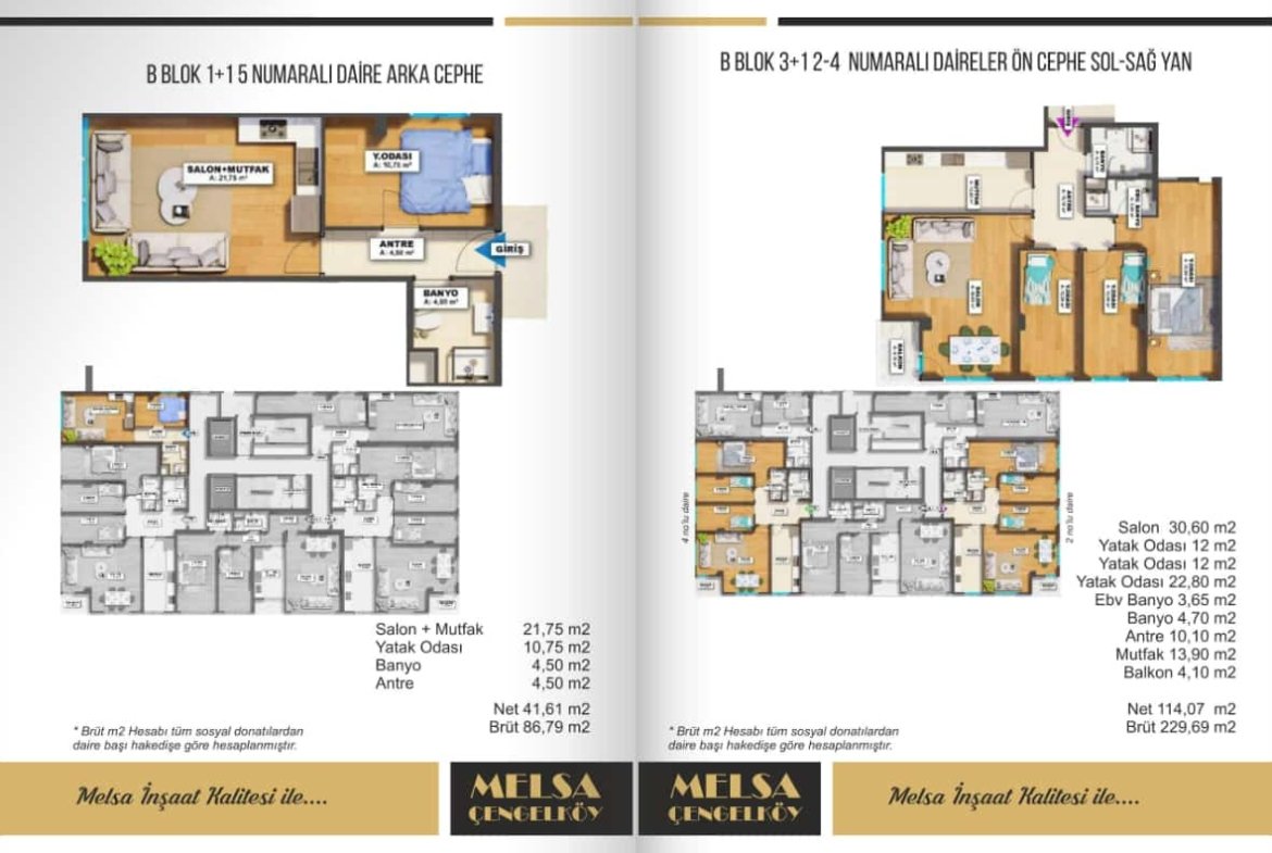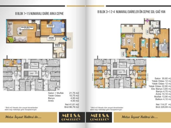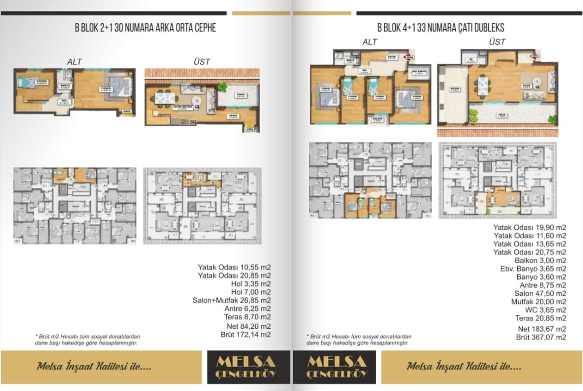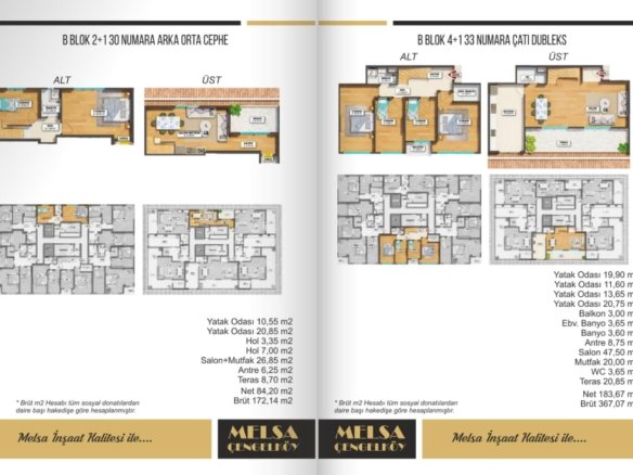 - 1+1, 2+1, 3+1, 4+1 ve dubleks daire seçenekleri